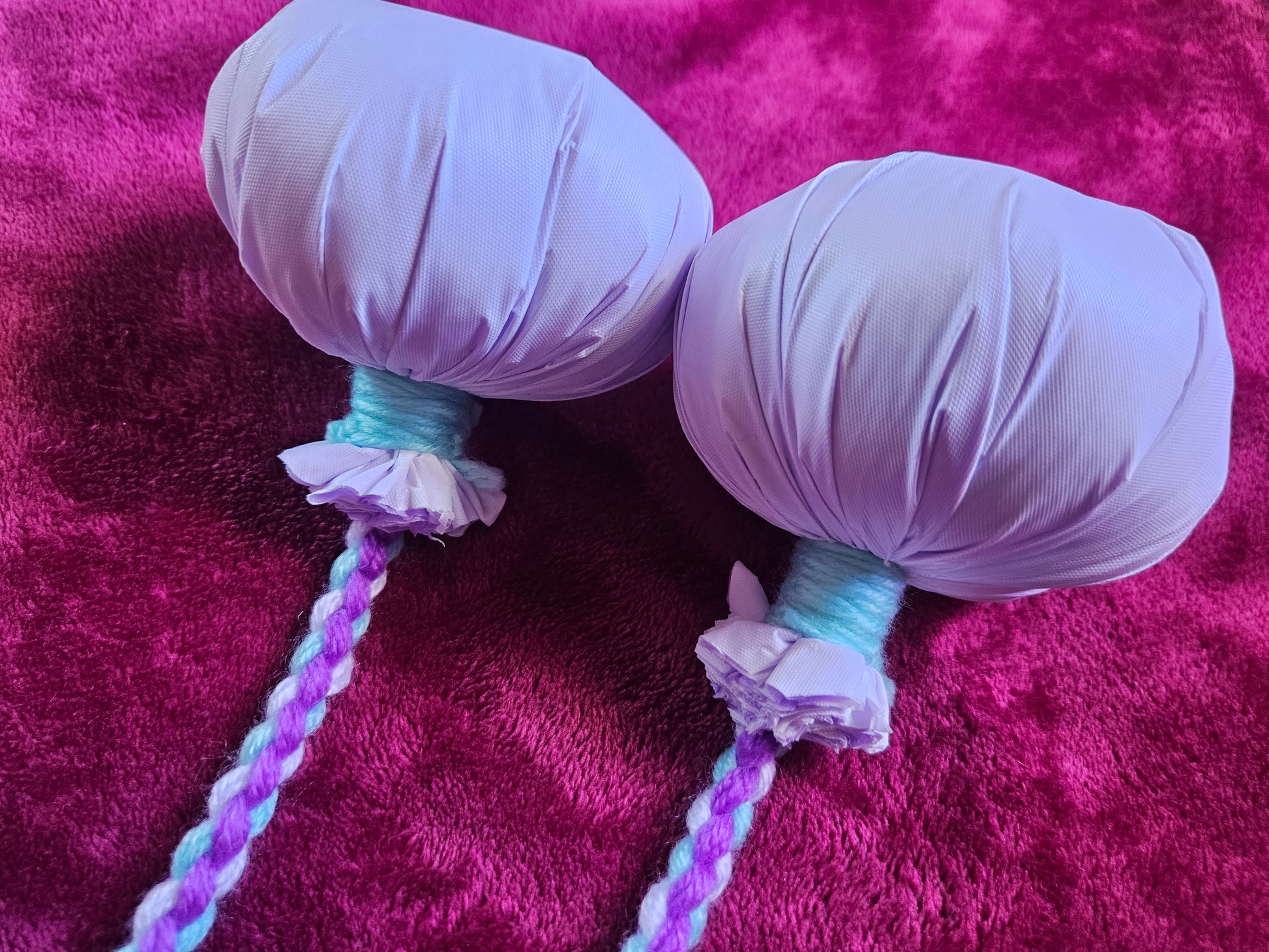 All our Poi are woven and handcrafted using 100% 8ply acrylic knitting yarn, recycled polyester filling and plastic sheet covers.