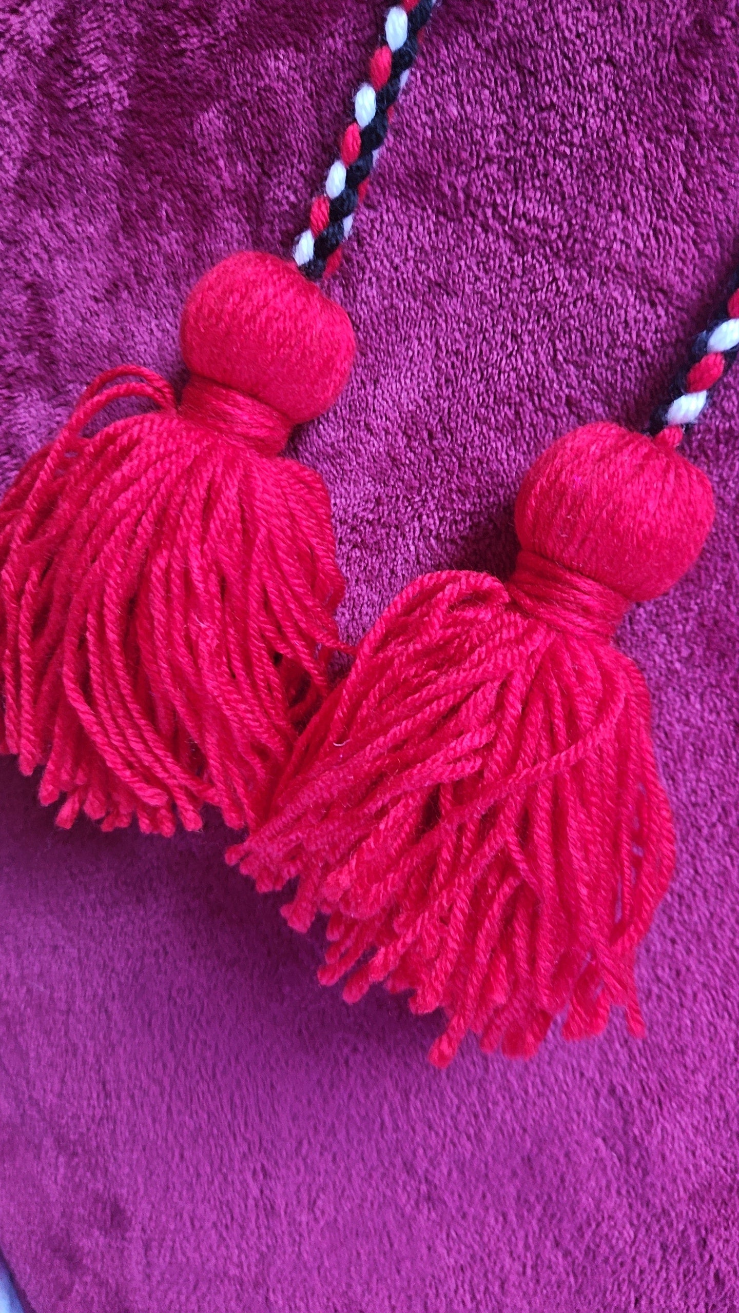 Our poi cords and popompomare all made with acrylic yarn. The ball (head of the Poi) is made with polyester filling and plastic sheet, molded and wrapped tightly and knotted with acrylic yarn to stabilise.